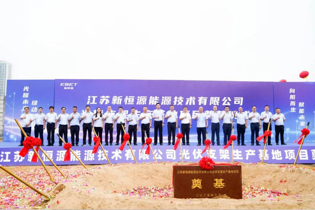 2025年8月7日上午,江苏新恒源能源技术有限公司(ESET)一期7GW光伏支架智能制造基地奠基仪式在徐州市经济技术开发区大庙街道隆重举行。政府领导、合作伙伴及企业代表齐聚一堂,共同见证这一战略发展的重要时刻,开启“光耀未来 绿动新程”新篇章。